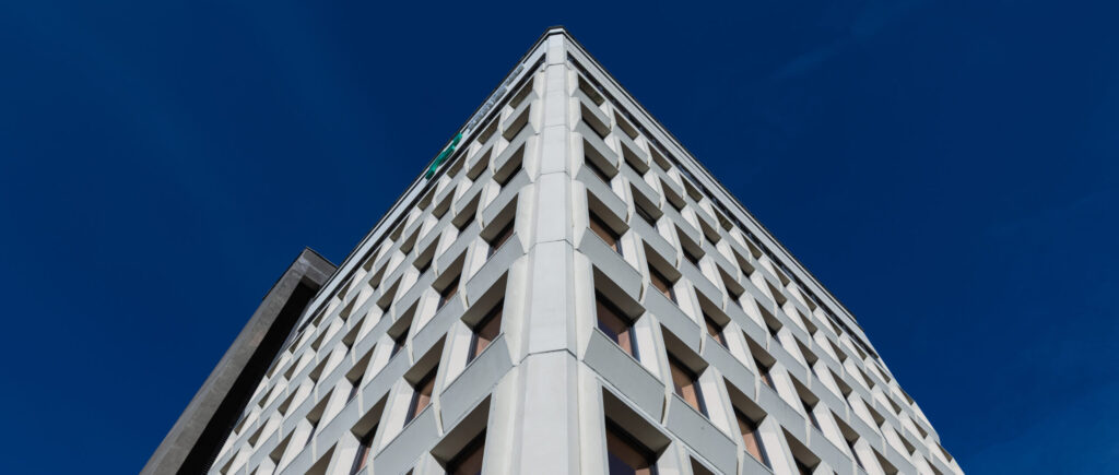 „Tai ne šiaip administracinis statinys – čia panaudotos labai aukštos kokybės medžiagos, tokios, kurios tuo metu daugelyje kitų objektų buvo sunkiai prieinamos. Viskas daryta tam, kad pastatas būtų ilgaamžis, reprezentatyvus ir neabejotinai išsiskirtų iš tuometinės Klaipėdos architektūros“, – pažymėjo G. Zakarackaitė-Gudaitienė. Fasadas iš karto atkreipia dėmesį savo architektūros sprendimais – dolomitinės plokštelės čia sudėliotos griežta ir logiška tvarka. Šalia gatvės prigludusi trijų aukštų pastato dalis, už jos – aukštesnis tūris, atitrauktas giliau į sklypą – tokia kompozicija suteikia masyvumo pojūtį. Neatsitiktinai statinys lyginamas su Seimo rūmais Vilniuje: architektūrines sąsajas formavo laikmečio tendencijos ir paties autoriaus profesinė patirtis.